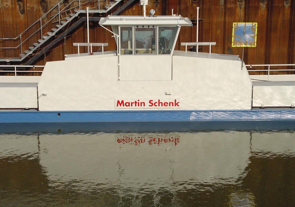 Die neue Fähre »Martin Schenk« vor der Vollendung in Andernach (19.01.2003).
