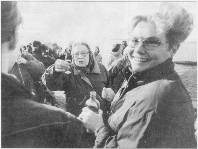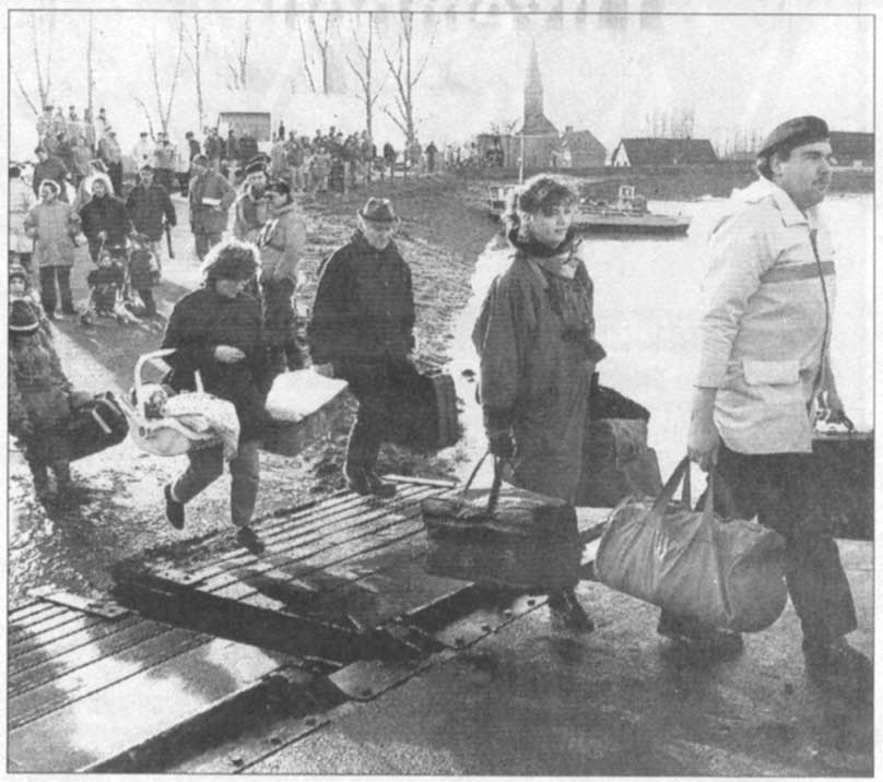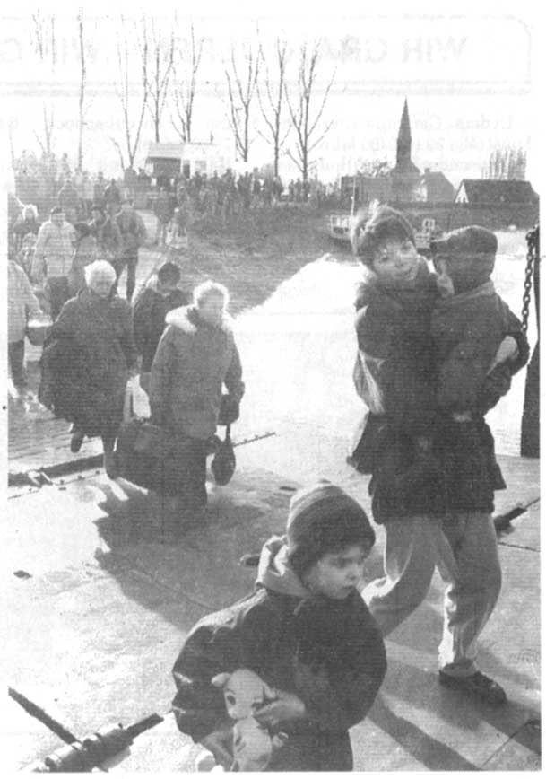 »Ich habe sie verwöhnt. Sie hat es auch verdient«, sagte Johanna Nellessen, als sie gestern ihre Freundin Maria Heiting zum Fährkopf brachte. Die Ur-Schänzerin Maria Heiting kehrte nach drei Tagen »Exil« auf dem Festland wieder in ihr Heimatdorf zurück. Mit der 72jährigen fuhren über das Hochwasser etwa 90 Frauen, Kinder und Alte zur Insel, die immer noch von der Flut eingekesselt ist. Die 30 auf der Festung gebliebenen Männer haben in den vergangenen Tagen und Nächten tapfer der Naturgewalt getrotzt, als sie Sandsäcke gegen Qualmwasser auslegten oder Keller auspumpten. Als die Evakuierten am Fährkopf eintrafen, warteten auf der anderen Seite bereits die Männer, die bei der Rückkehr freudig ihre Frauen und Kinder umarmten.